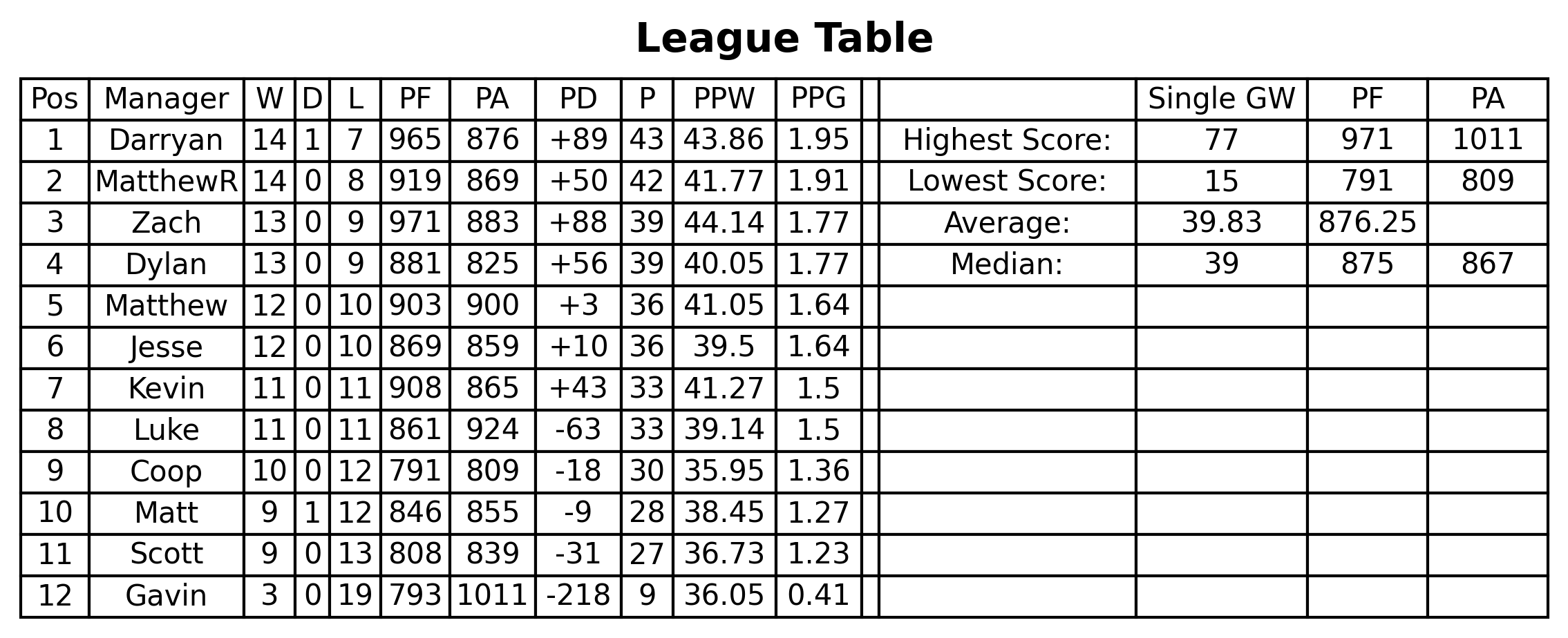 League Table
