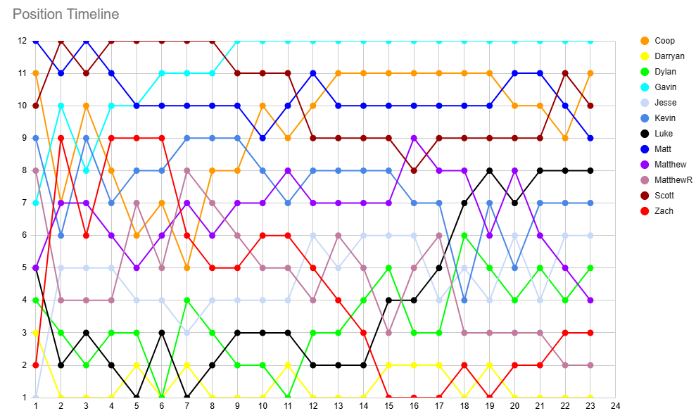 On the bubble (in no order): Matt, Coop, Alex, ZachA Fell off: Alex