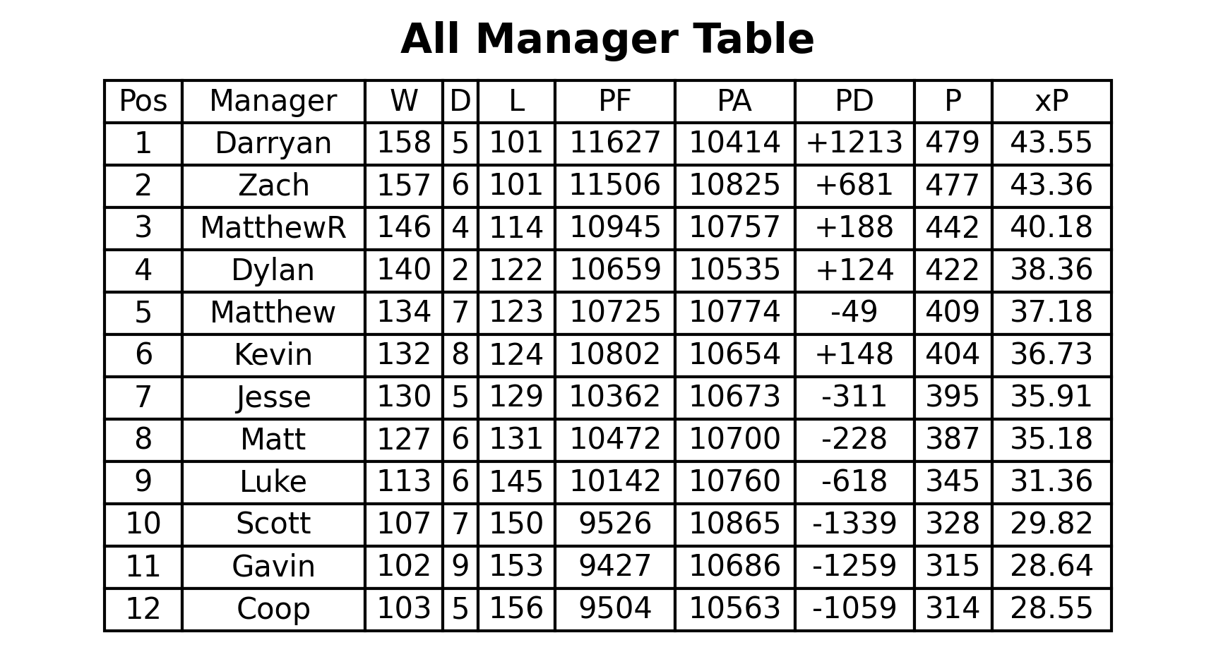 xP Table (manager vs average)