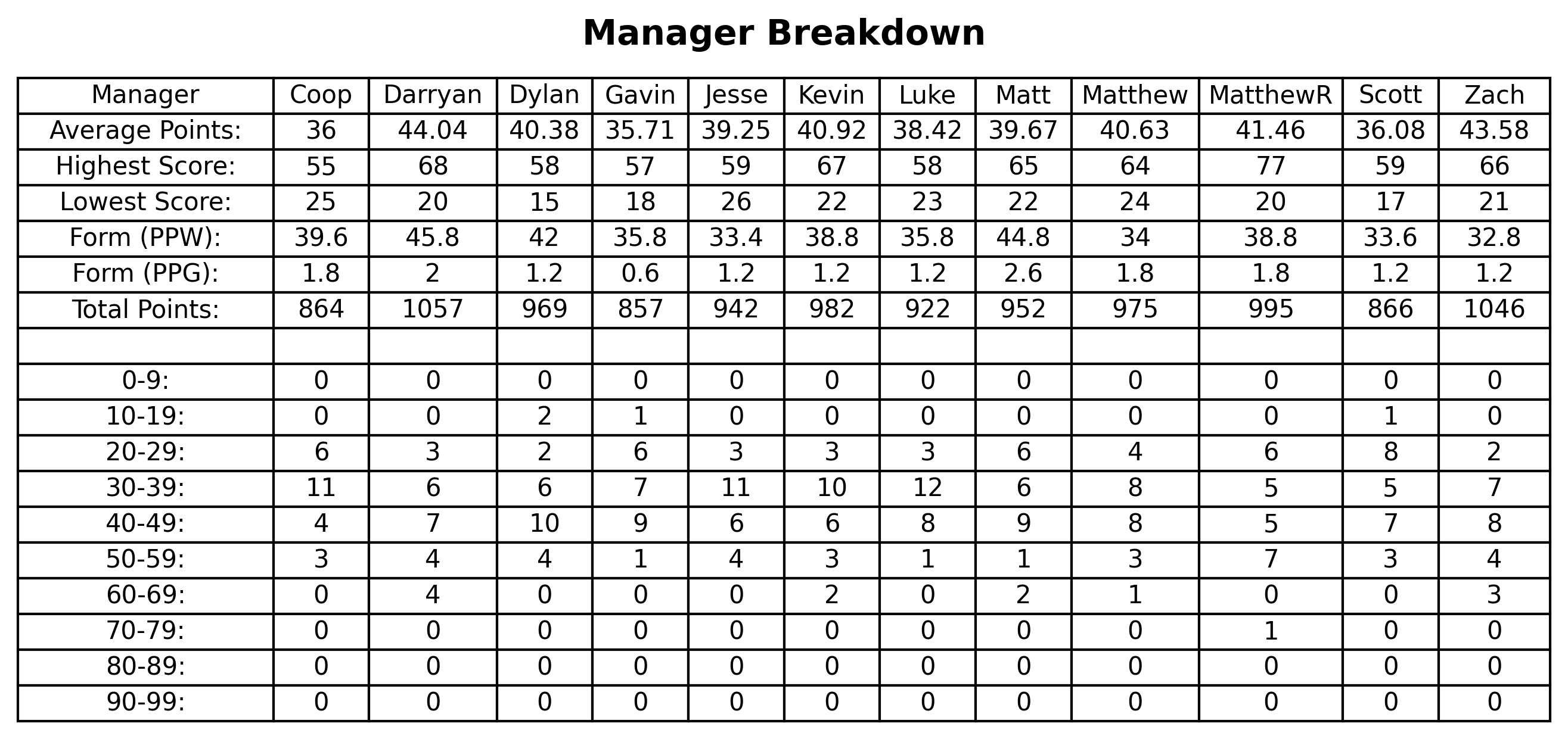 Manager Breakdown