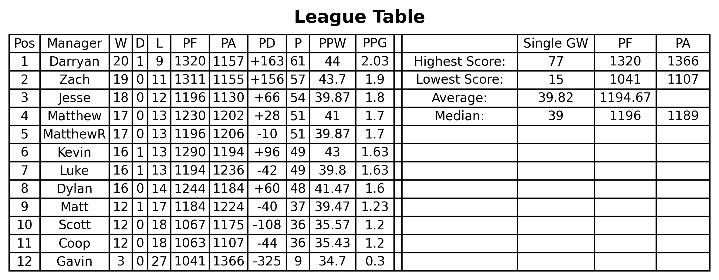 League Table