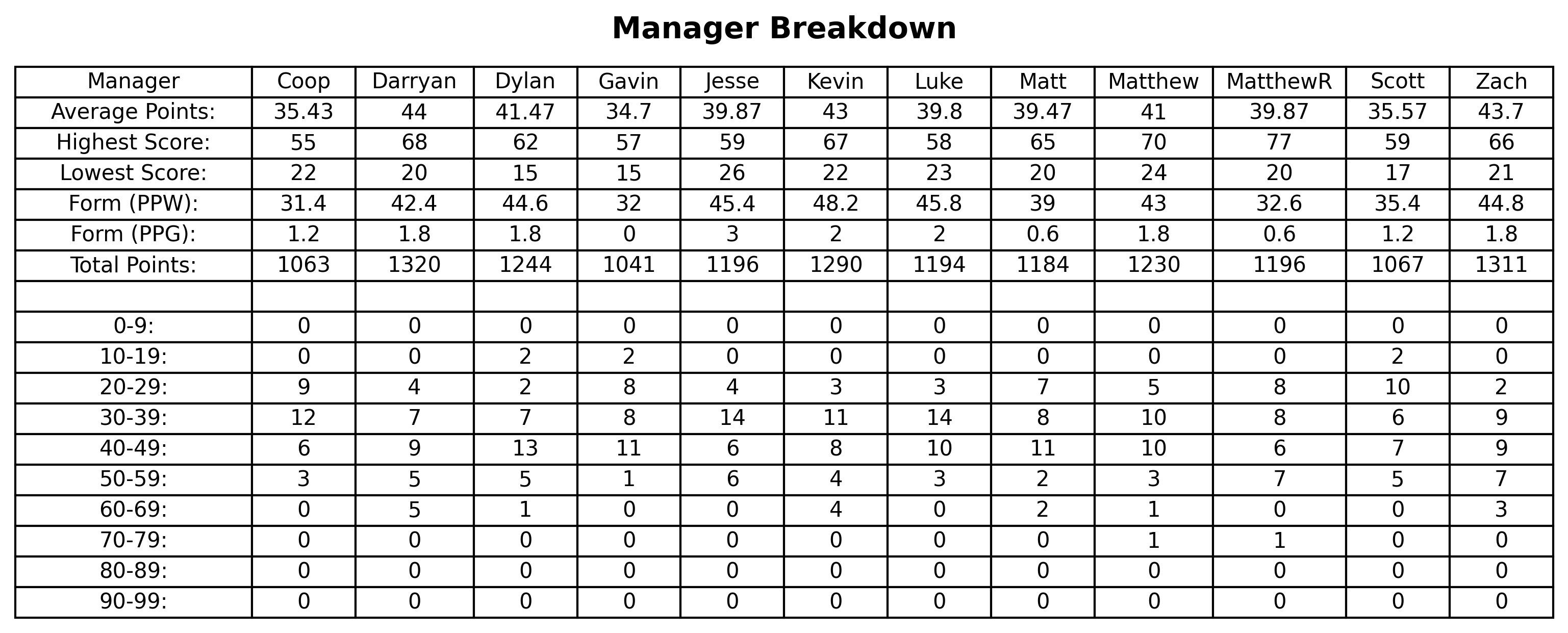 Manager Breakdown