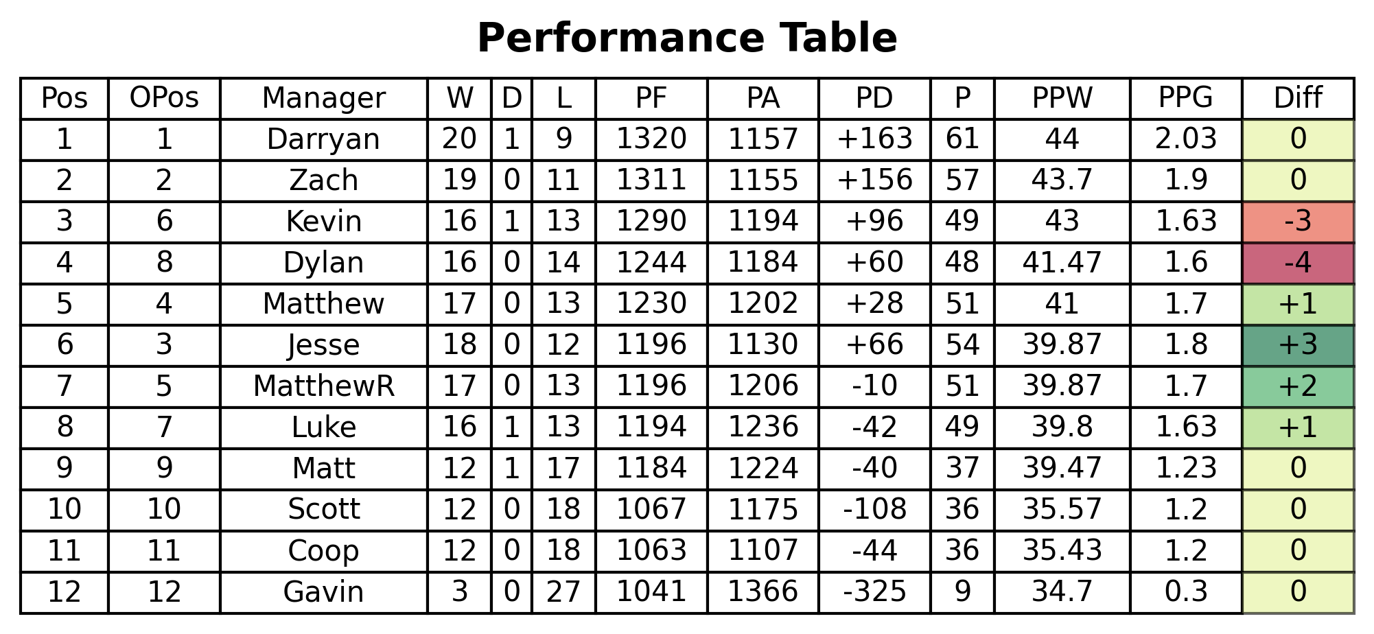 Performance Table