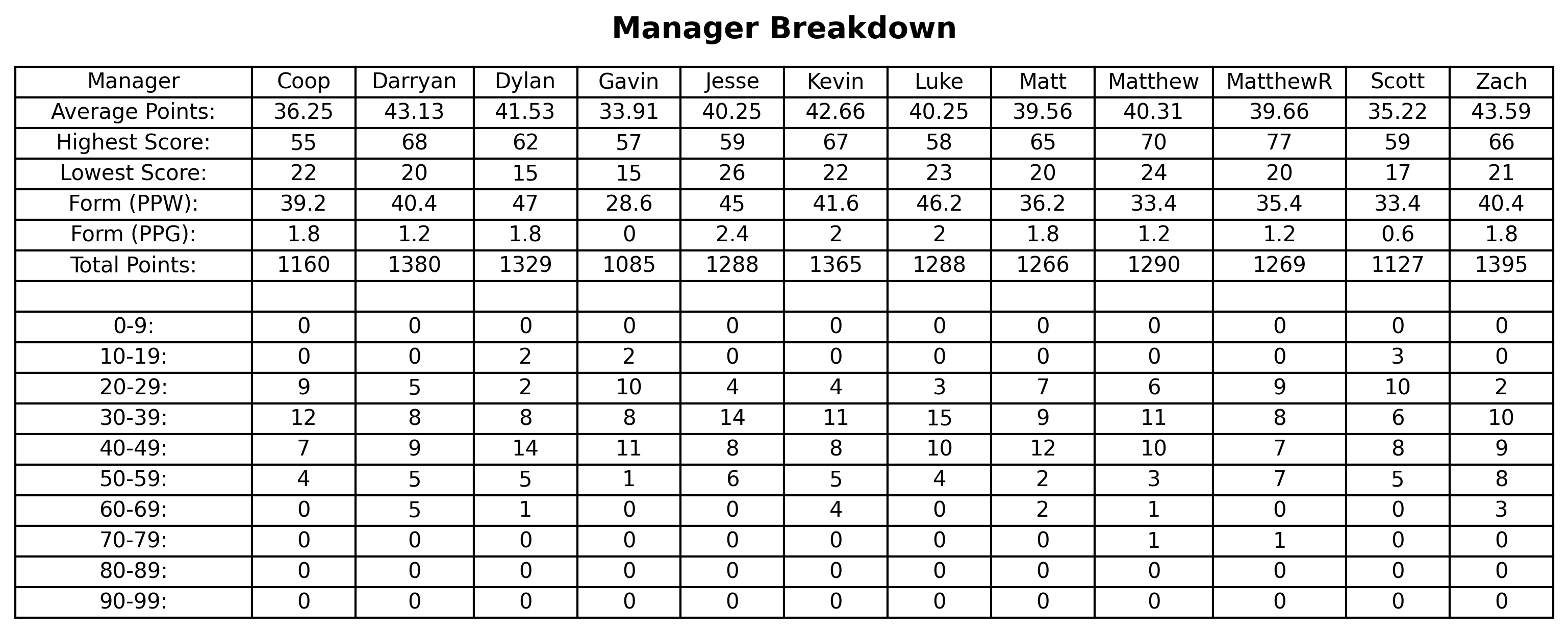 Manager Breakdown