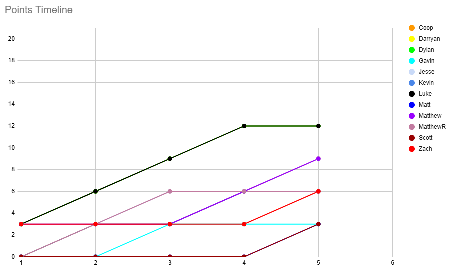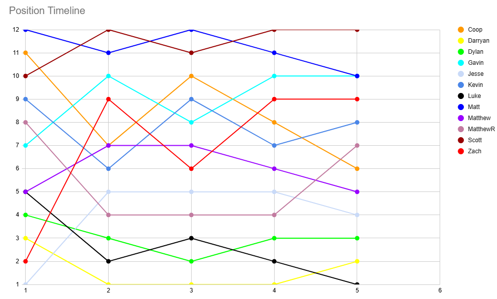 On the bubble (in no order): Zach, ZachA, Coop, Dylan Fell off: ZachA, Dylan