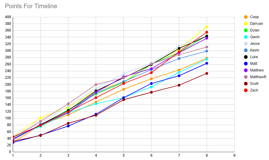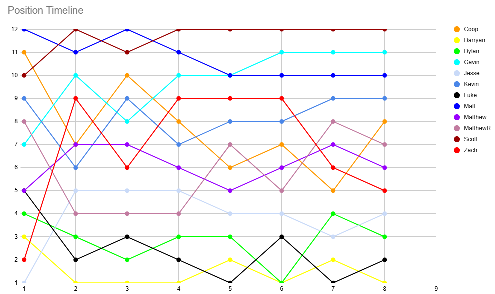On the bubble (in no order): ZachA, MatthewR, John Fell off: ZachA, MatthewR