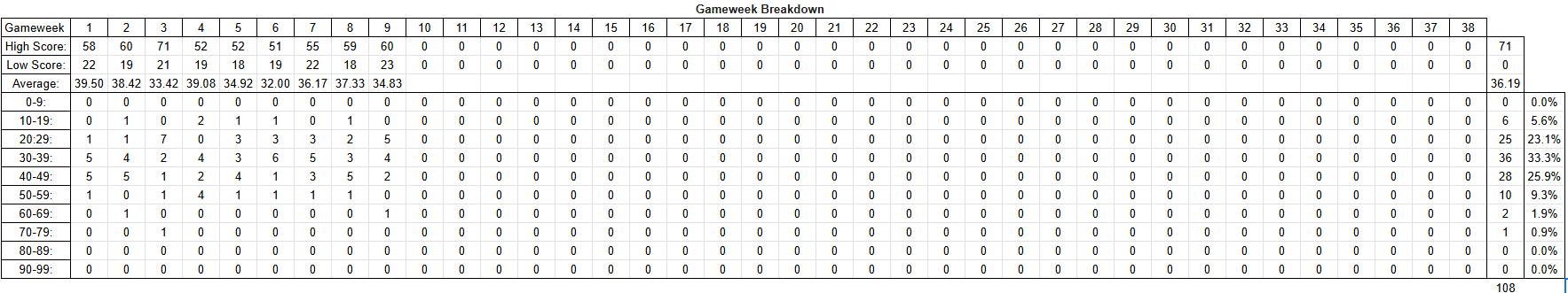 2 - Matthew2 (-) - League B - Similar story to Luke (and Darryan) for this team, as the injuries to Evanilson and Chris Wood hit hard. Still an okay enough score, but barely in the 30s is certainly an off week.
