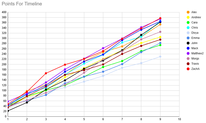 On the bubble (in no order): ZachA, MatthewR, Morgs Fell off: Morgs