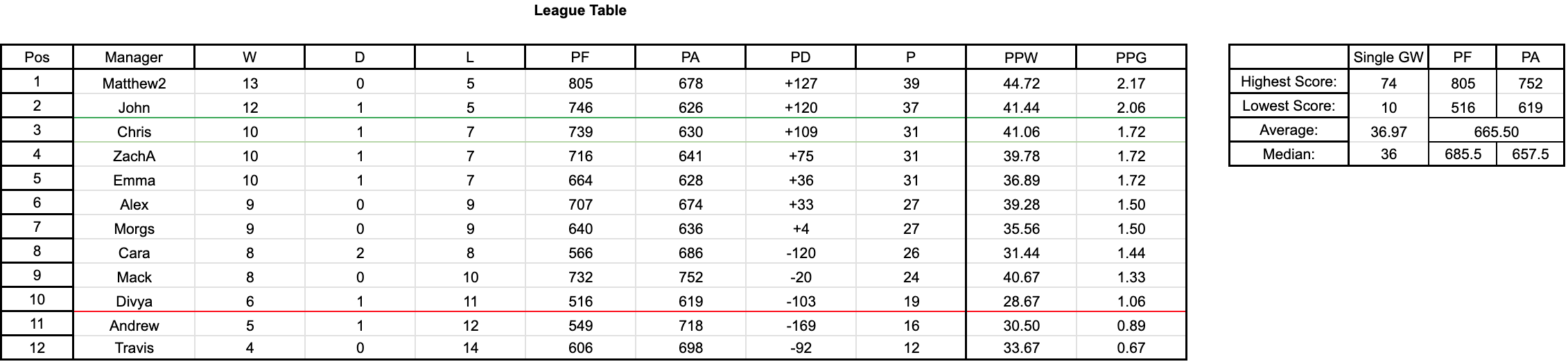 League Table